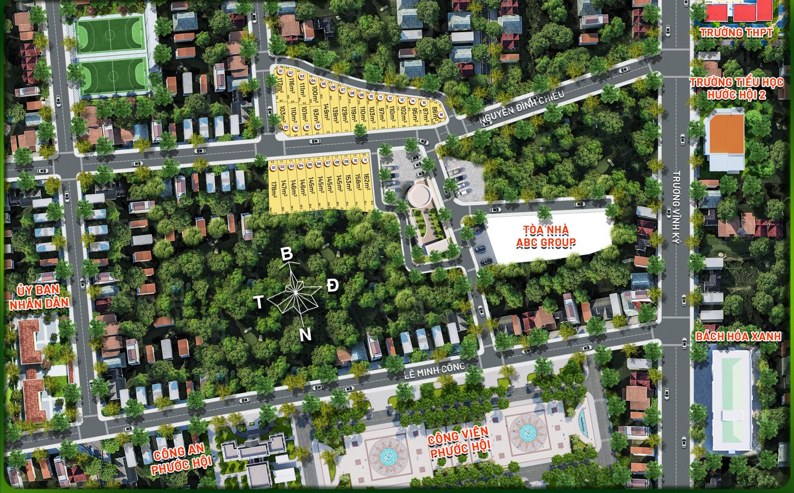 Phối cảnh tổng thể quỹ đất dự án ABC dựa trên ý tưởng của đơn vị phát triển.